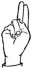 На ћирилици написано КРИСТИНА ЂАКОВАЦ састоји се из 15 слова [?]. Исписано ћириличном једноручном азбуком за глувонеме: